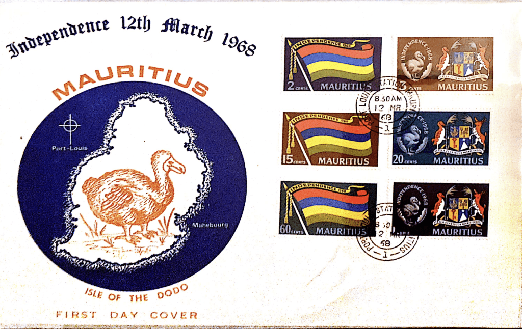 Mauritius became independent from Great Britain on 12th March 1968. To mark that important event in our political history, an official first day cover was issued on that day.