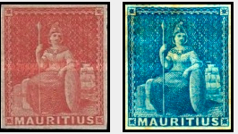 On 21 September 1847, Mauritius issued two stamps: an orange-red one penny (1d) and a deep blue two pence (2d). The words “Post Office” appear in the left panel. These two stamps are among the rarest stamps in the world. Only 500 of each were printed from a single plate bearing both values. They were notably used on invitations sent out by the Governor’s wife for a ball which she was holding.