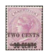 In 1878, the currency changed from pounds sterling to Mauritian Rupees and stamps were surcharged with their equivalent in cents.