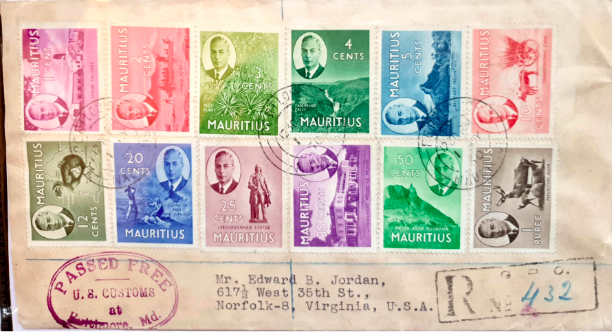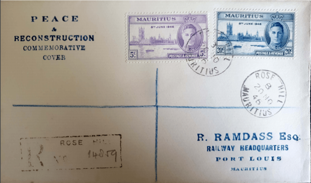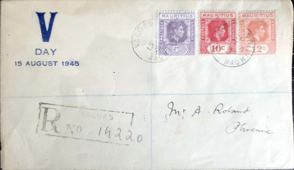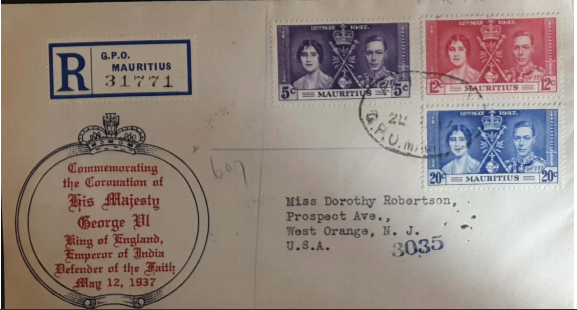 In 1948, two omnibus stamps were issued to celebrate the silver wedding anniversary of the Royal couple. Photogravure was first introduced on Mauritian stamps in this issue. No official first day cover was released by the GPO, but few special commemorative covers were released by private philatelists. One such cover is shown below.