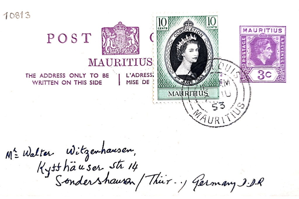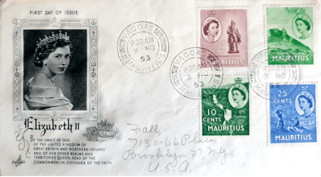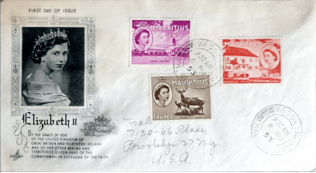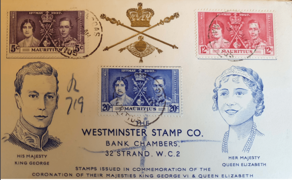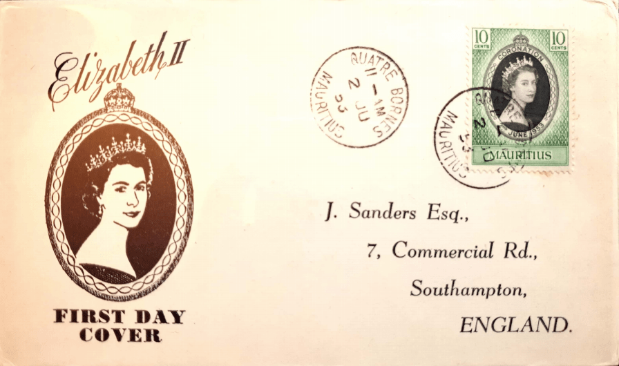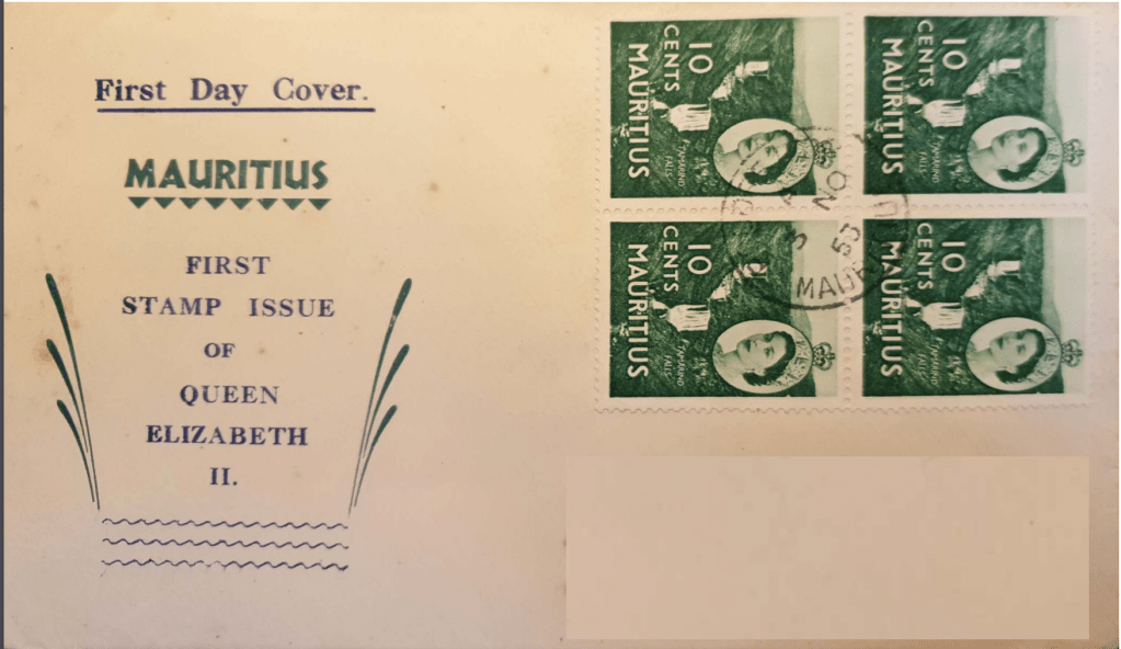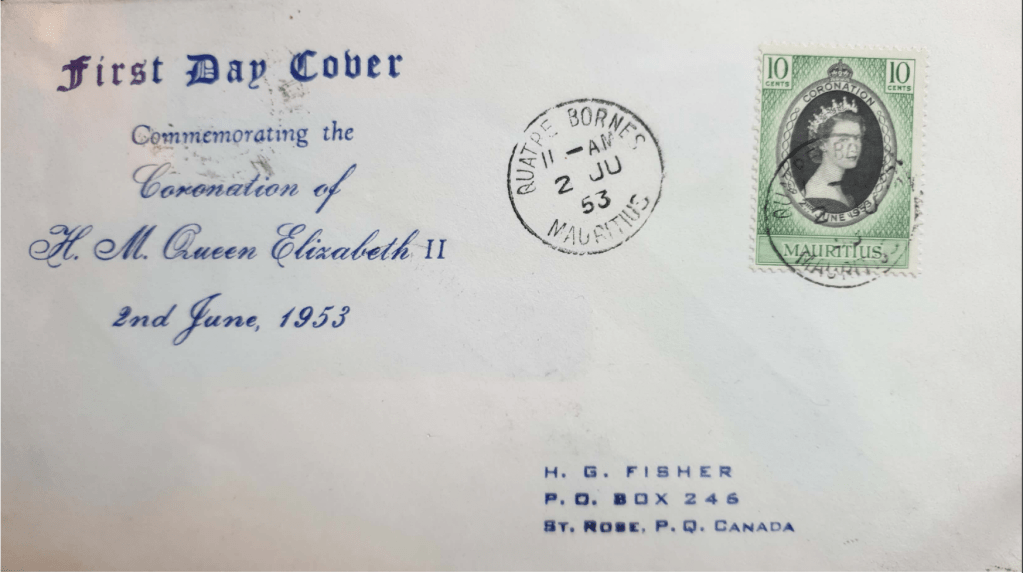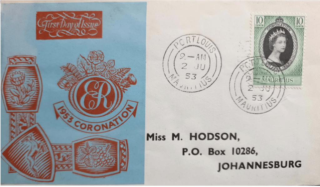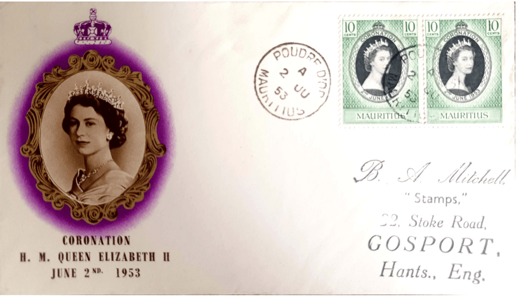 To mark the coronation of Queen Elizabeth II, a number of special commemorative covers were issued. Below is a few examples of such special covers (10 in total, including envelopes and post cards). Mauritius did not issue an official first day cover on that occasion.