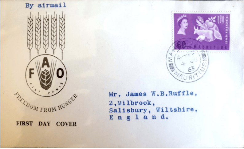 On 4 June 1963, a unique stamp was issued to mark the Freedom from Hunger campaign. The stamp shows protein foods. No official first day cover was issued by the GPO, but few special private commemorative covers were issued (three examples below).