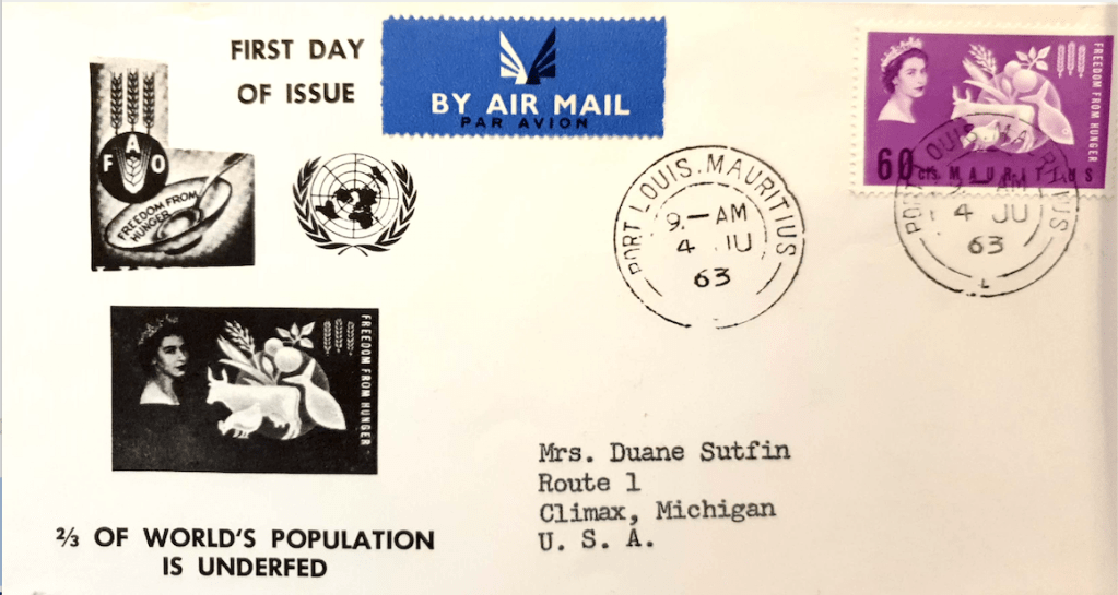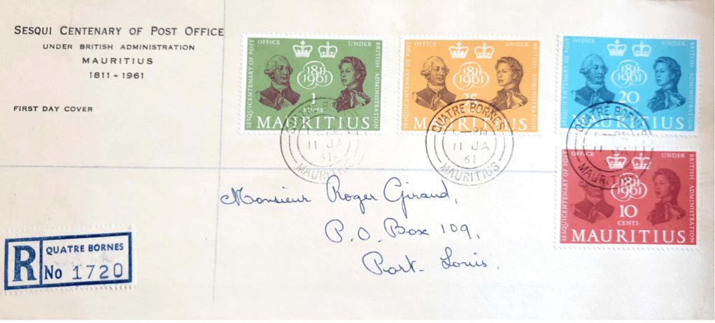 On that occasion, Mauritius released its first Official First Day Cover. Other private covers were also issued on that occasion (3 of those are featured below).