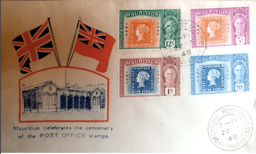 (v) 22 March 1948: Mauritius celebrates centenary of the Post Office Stamps (unofficial)