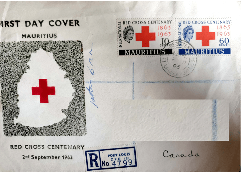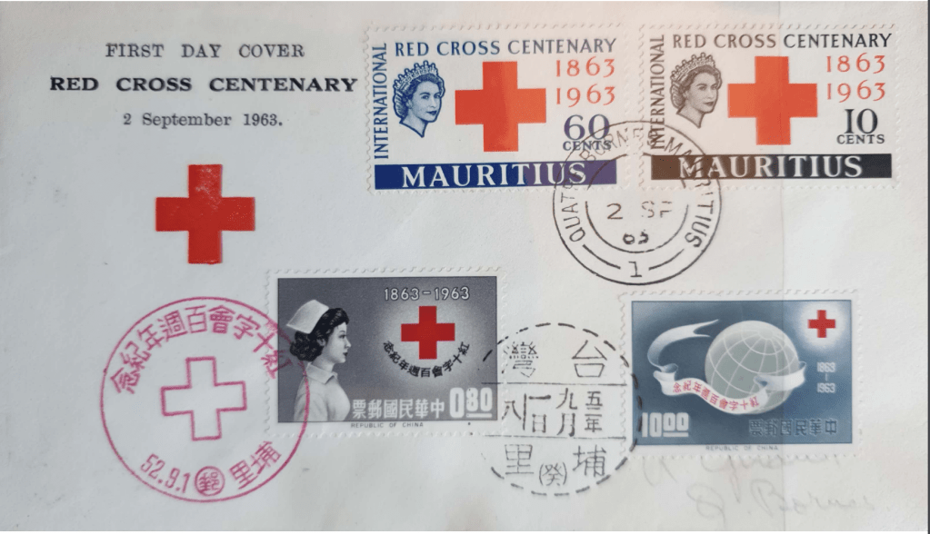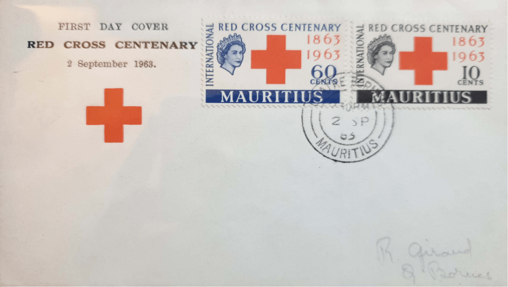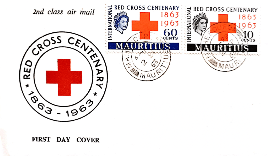 On 2 September 1963, to mark the centenary of the International Red Cross, a set of 2 stamps were issued, both featuring the red cross emblem. No official first day cover was released by the GPO, but few special commemorative covers were released by private philatelists.