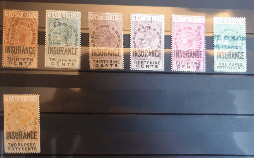 Some examples are shown below. You can refer to Revenue Reverend’s main page and supplementary information page on Mauritius for a complete set of insurance fiscal stamps.